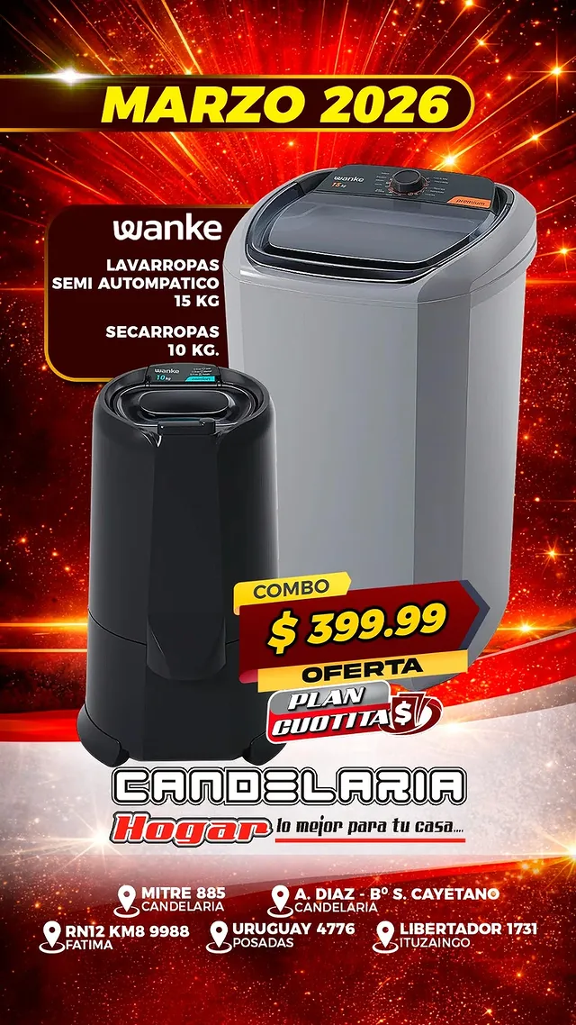 Combo Lavarropas Semiatuomático 15kg y Secarropas 10kg Wanke | Candelaria Hogar